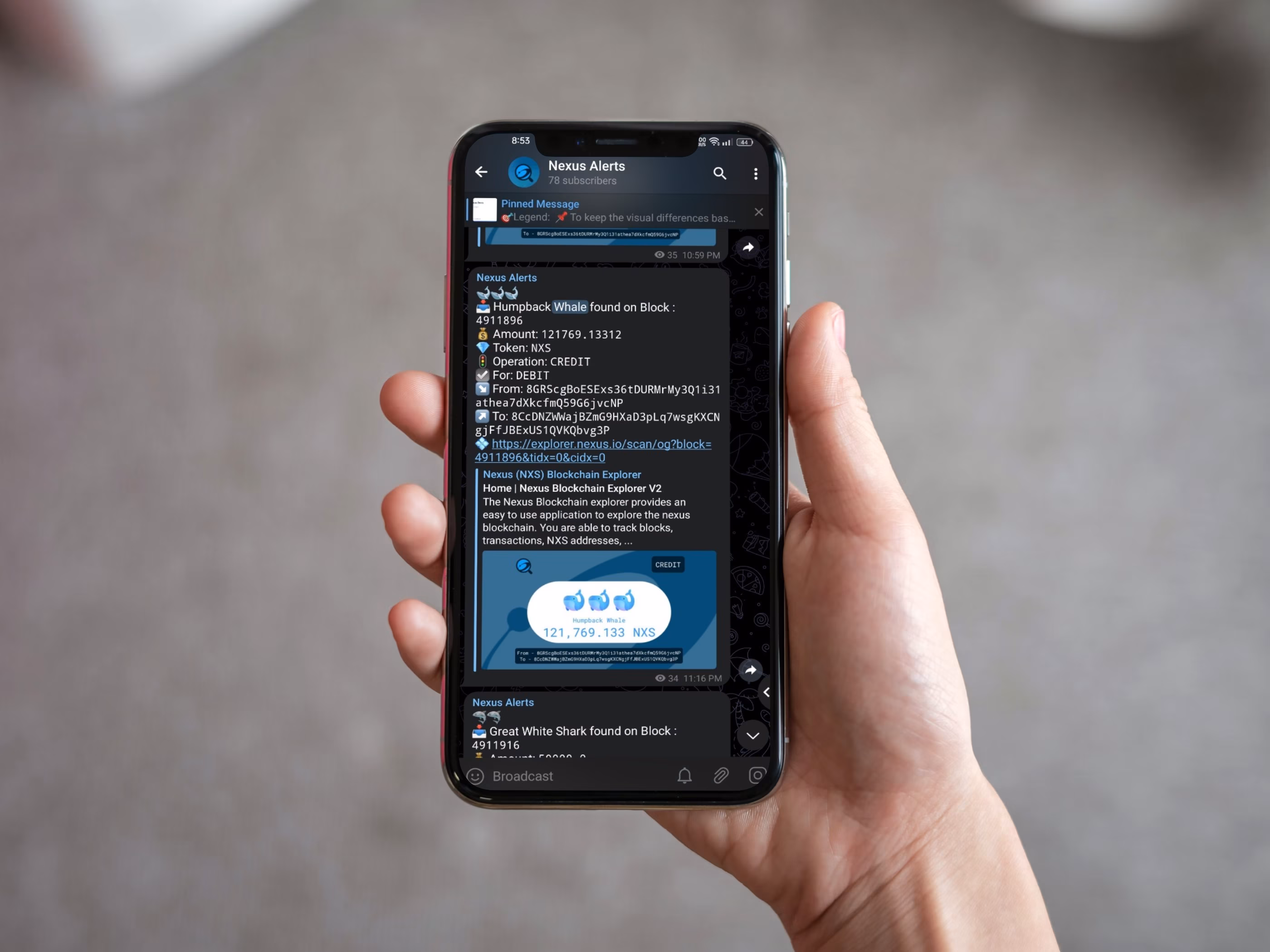Realtime alert bot shows high value transactions on Nexus.